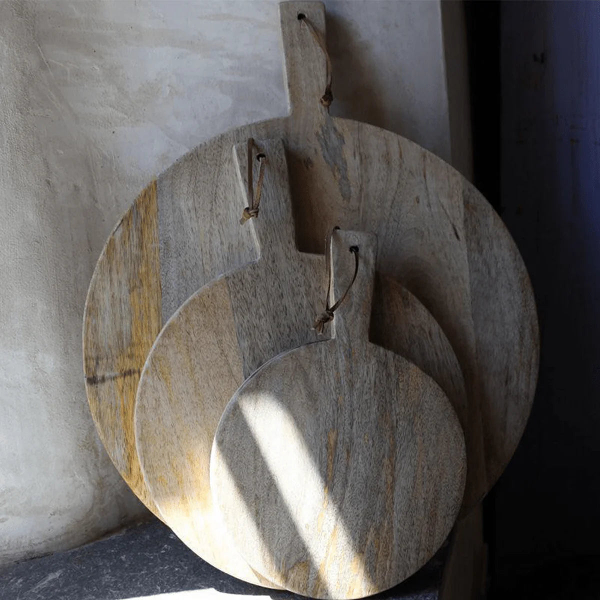 The Nkuku Mango Pizza boards are beautifully hand crafted from sustainable mango wood for a striking finish, complete with a leather tie, this gorgeous board is deal for serving antipasti or sharing pizza, bread and cheese, a must for informal dining.